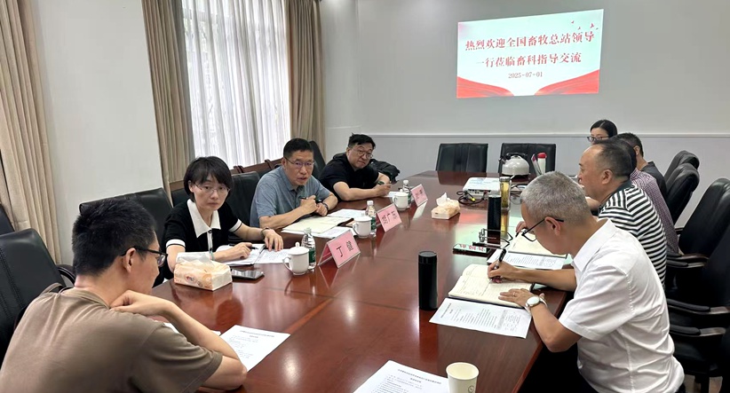 2025年7月1日,全國畜牧總站首席專(zhuān)家胡廣東研究員、新產(chǎn)品評審處處長(cháng)杜偉研究員、行業(yè)指導處處長(cháng)丁健博士等專(zhuān)家一行,蒞臨四川省畜科集團公司進(jìn)行專(zhuān)題調研指導。